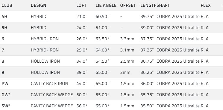 ""Set Configuration Options"" ""5H,6-PW,GW,SW( 8 clubs)