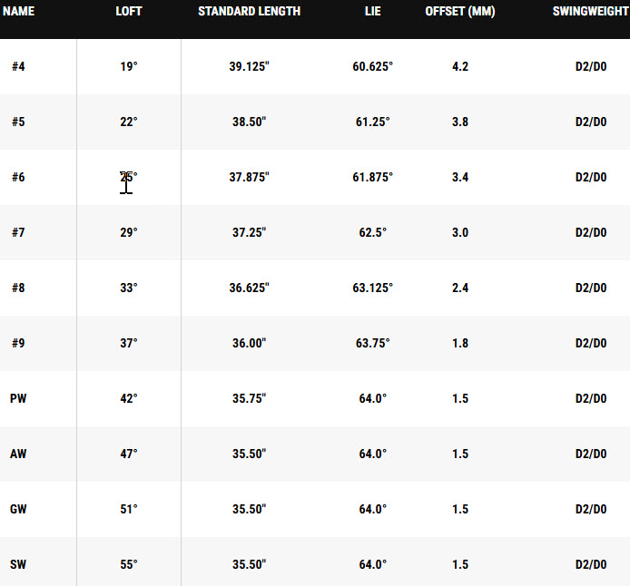 Wilson Staff Model Blade Irons - 2026 Specifications: