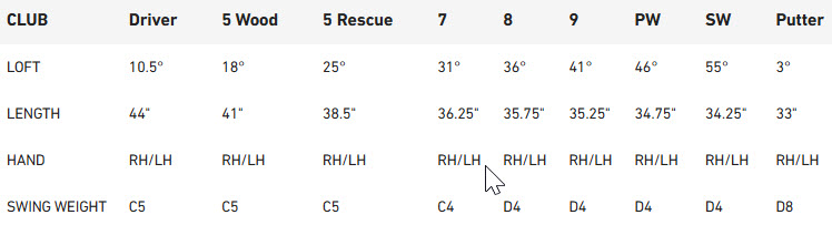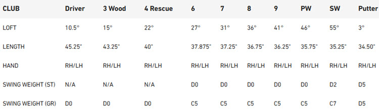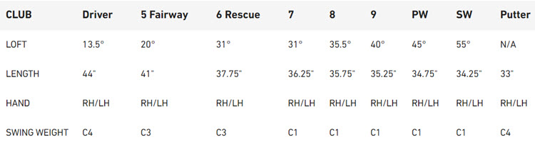 Club 3+Wood-13.5 3Wood-15 4Wood-16.5 5Wood-18 7Wood-21